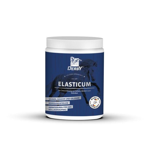 Derby Elasticum enthält 30 % hydrolysierte Gelatine und 39 % Hefen. Die Kombination aus Hefen und Gelatinehydrolysat liefert wichtige Bausteine für den Stoffwechsel des Bindegewebes. Es stärkt Bänder, Sehnen und Gelenke und sorgt somit für eine bessere Beweglichkeit durch gezielte Nährstoffversorgung.