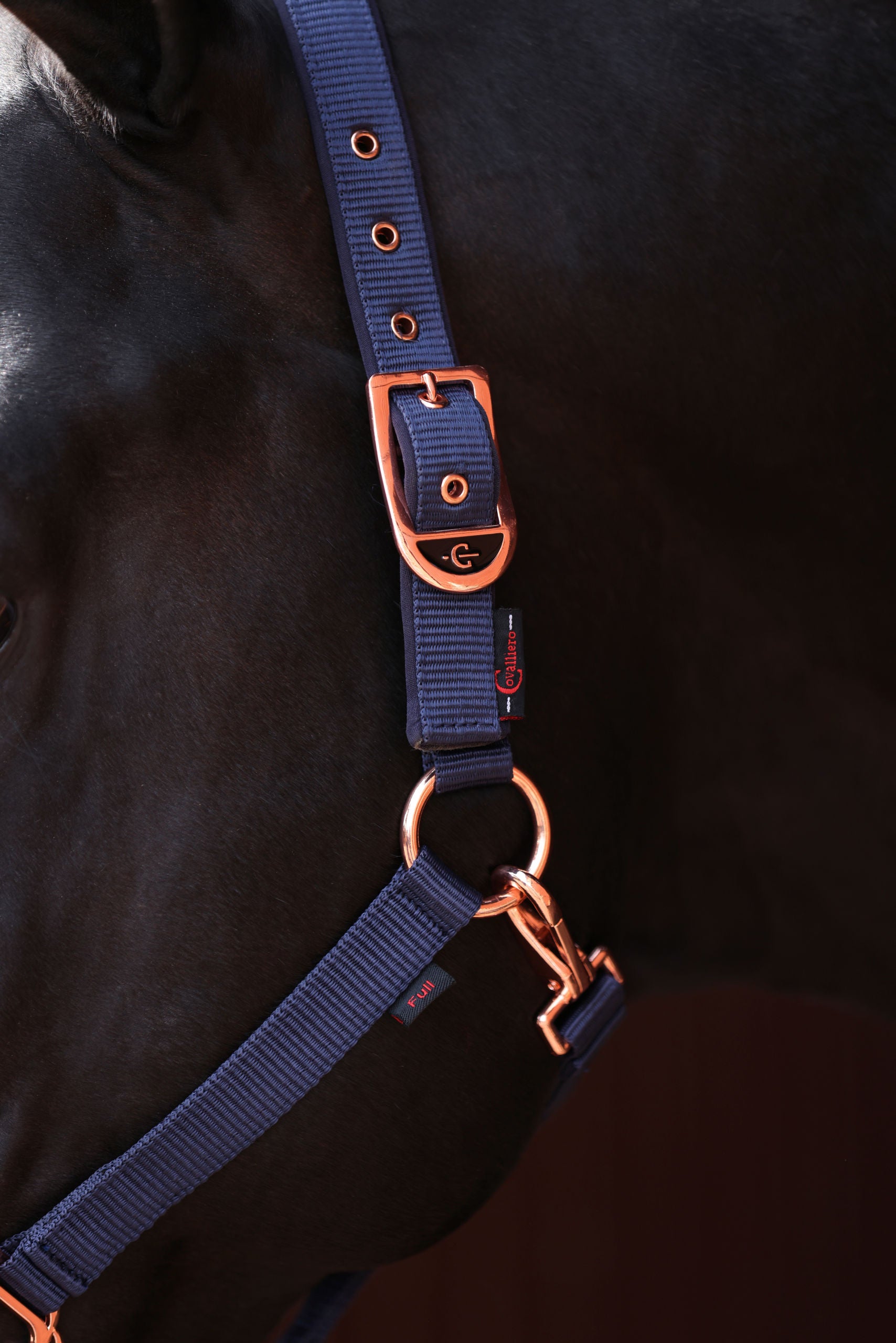 - Genick- und Nasenriemen mit Dornschnalle verstellbar und mit weicher Polsterung unterlegt