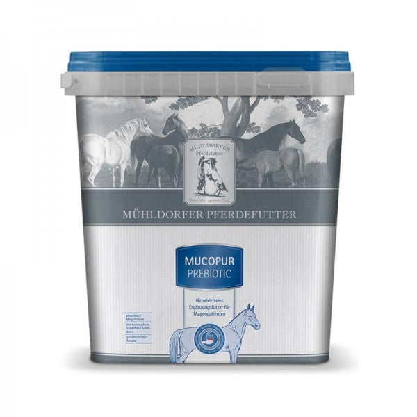 Mühldorfer Mucopur prebiotic ist ein Ergänzungsfutter aus wohltuenden Kräutern und optimal säurebindenden Zutaten, welches sich gesundheitserhaltend auf den Magen auswirken kann.