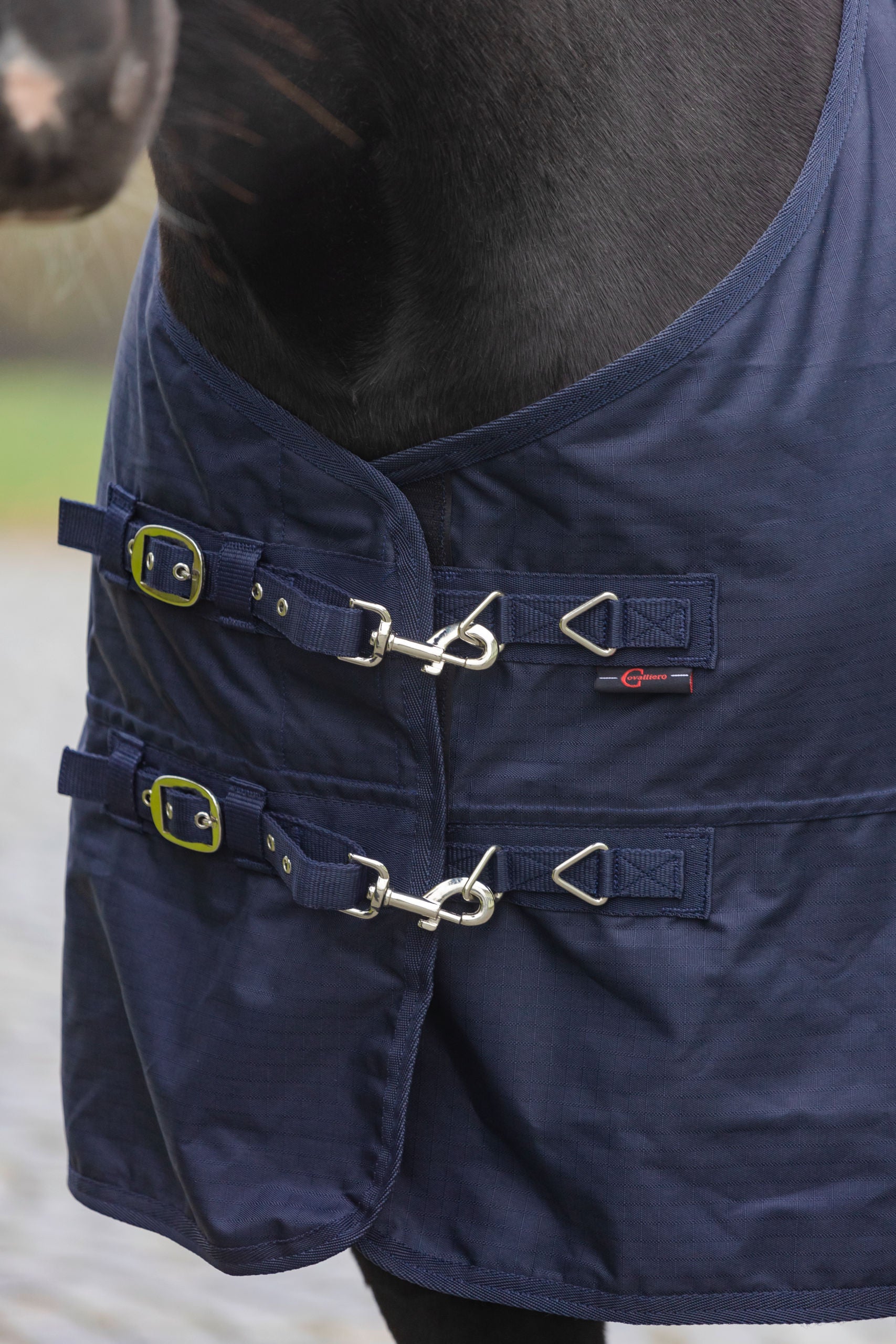 Die Outdoordecke RugBe Zero vereint beide Eigenschaften. Der neu entwickelte Brustlatz lässt einerseits raumgreifende Bewegungen des Pferdes zu und sorgt andererseits für eine optimale Passform.