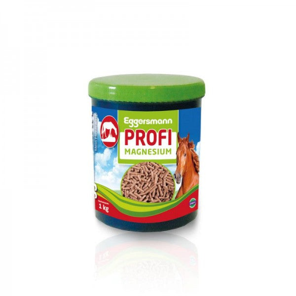 Eggersmann Profi Magnesium ist ein Ergänzungsfuttermittel für den Nerven- und Muskelstoffwechsel mit dem Mineralstoff Magnesium. Ein Mangel an Magnesium kann sich in Nervosität und reduzierter Ausdauer, Leistungsbereitschaft oder Belastbarkeit äußern, da Herz- und Skelettmuskulatur an Leistungsfähigkeit verlieren. Eine Kombination aus organisch gebundenem Magnesium, Tryptophan und B-Vitaminen kann diesen Mangelsituationen entgegen wirken, das Verhalten in Stresssituationen verbessert und Schreckhaftigkeit und Unruhe verhindert werden. Zudem fördert es die Konzentrationsfähigkeit und allgemeine Entspannung, was sich zusätzlich positiv auf die Muskulatur auswirken kann.