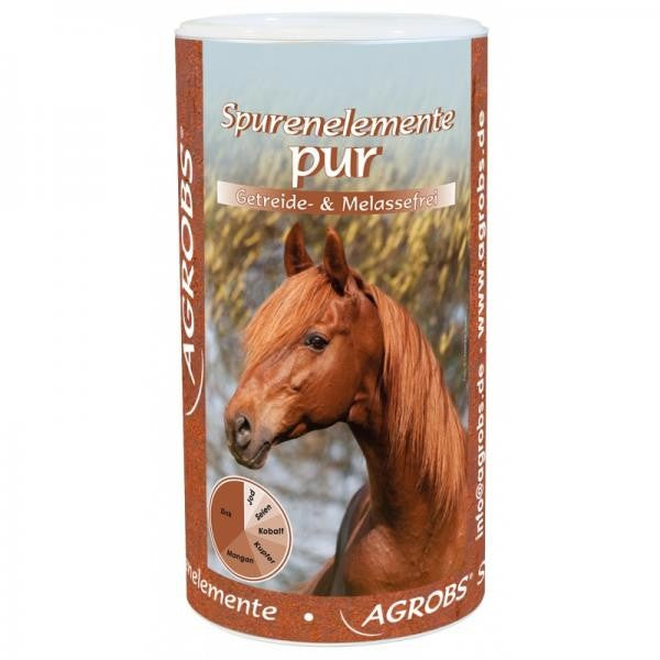 AGROBS Spurenelemente pur ist ein Ergänzungsfuttermittel für Pferde, das die wichtigen Spurenelemente Zink, Selen, Kupfer, Mangan, Jod und Kobalt in organisch gebundener Form liefert. Mangelerscheinungen, schlechte Haut- und Hufqualität, Allergien, die aus einer unzureichenden Versorgung oder einem erhöhten Bedarf, wie z.B. Wachstum, gesteigerte sportliche Leistung, Stress oder Krankheit resultieren, können gezielt ausgeglichen werden.