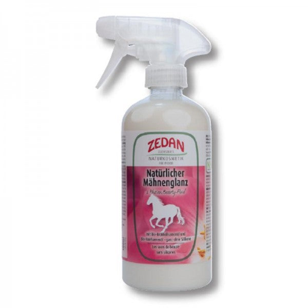 ZEDAN Natürlicher Mähnenglanz verbessert die Kämmbarkeit, beugt Haarschäden vor und verleiht dem Haar einen seidigen Glanz mit mehr Volumen - ohne Silikon! Als natürlicher Silikonersetz kommt Bio Brokkolisamenöl zum Einsatz, Bio Hanföl pflegt Mähne und Schweif und fördert ein gesundes Haarwachstum.